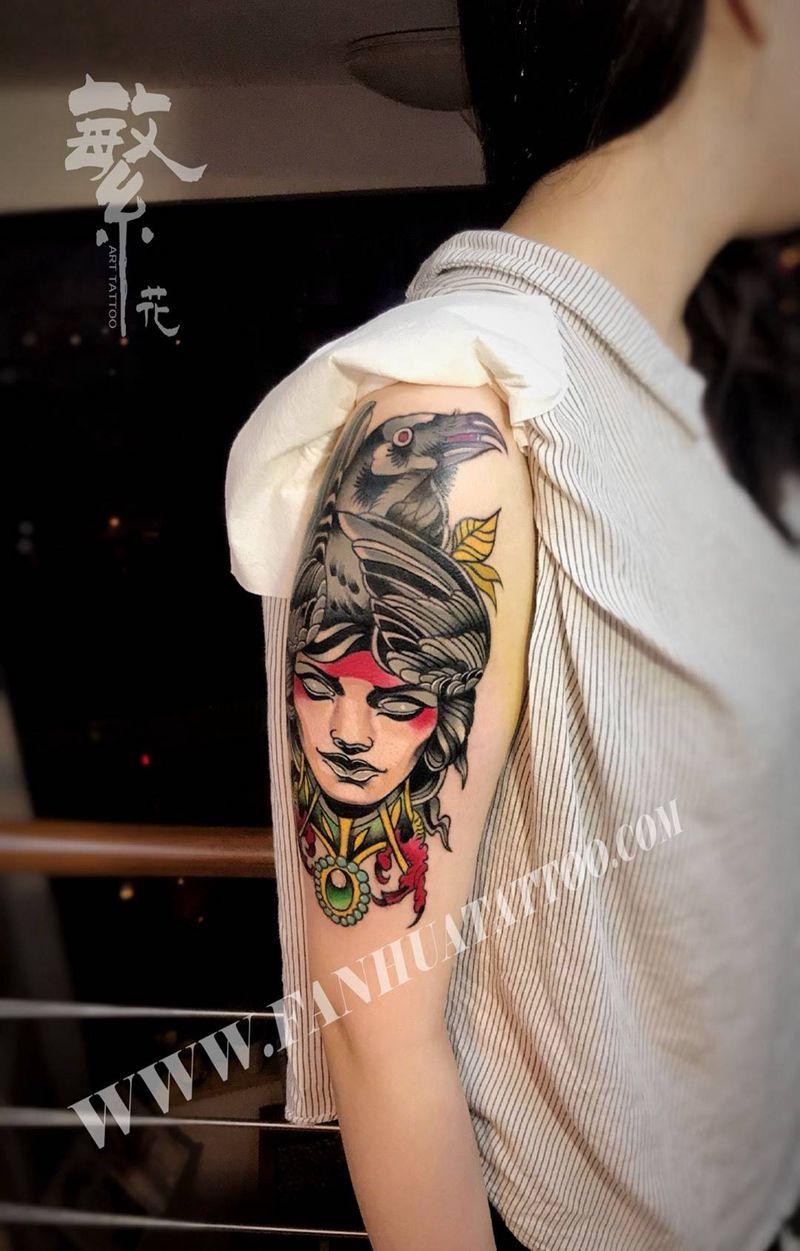 new school艺妓乌鸦纹身图片_手稿成品手部手臂人物动物欧美纹身图案