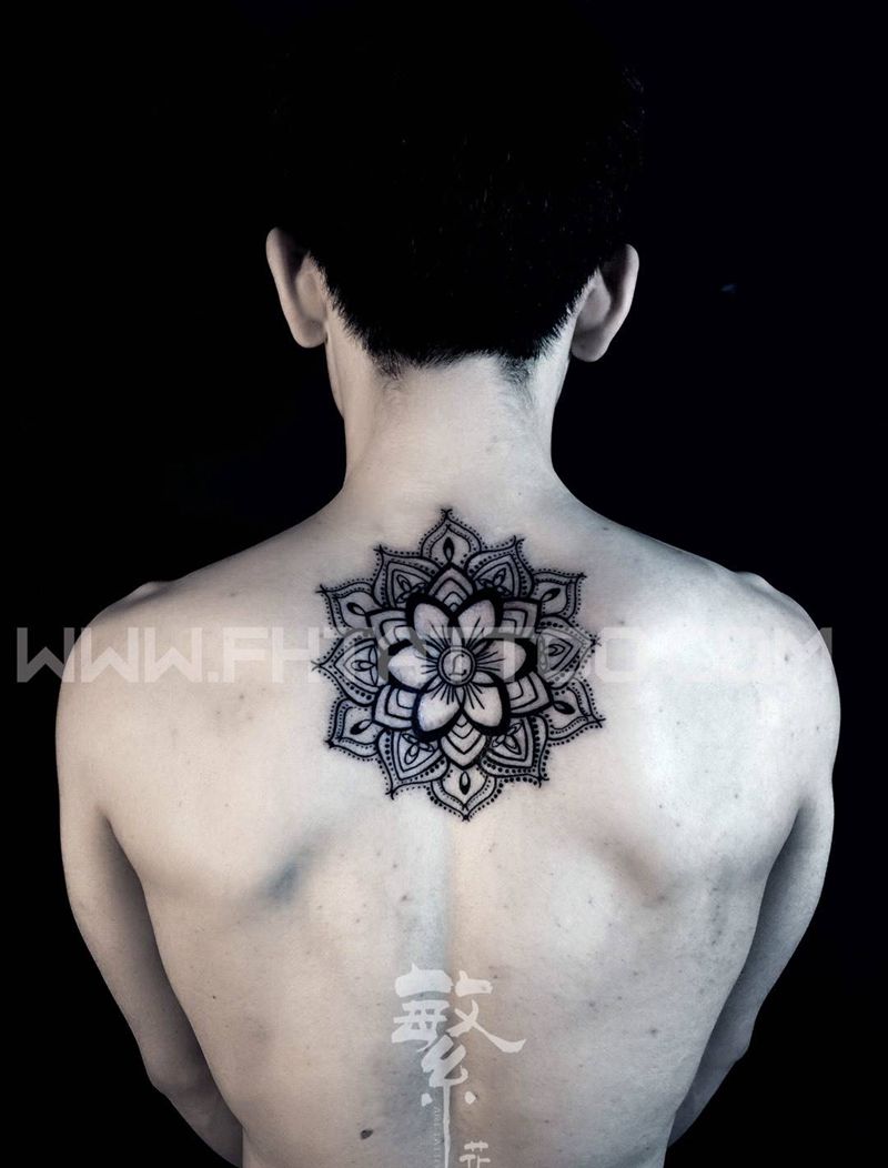 情侣 曼陀罗花纹身图片_手稿成品背部颈部欧美清新几何原创脖子纹身图案