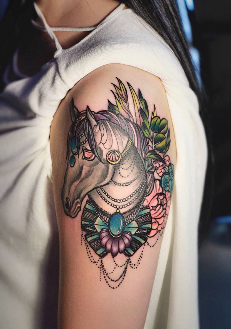 当前位置: 首页 >江苏省苏州市纹身店-苏州繁花艺术刺青纹身图案>马纹身图片_成品手稿手臂手部欧美动物纹身图案