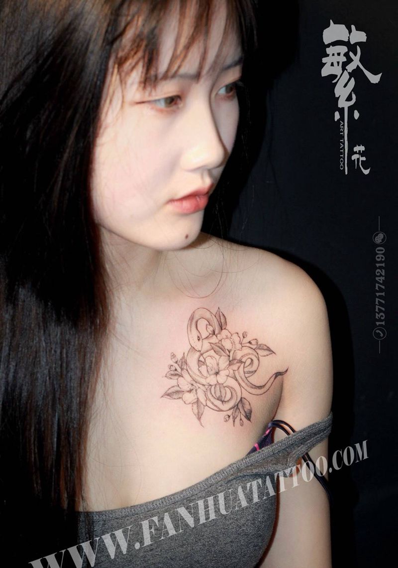 • 女性大花胸纹身_43张霸气漂亮的女性大花胸纹身图案作品
