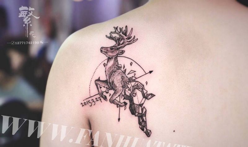 当前位置: 首页 >江苏省苏州市纹身店-苏州繁花艺术刺青纹身图案>鹿纹身图片_成品手稿背部肩部传统国画动物满背纹身图案