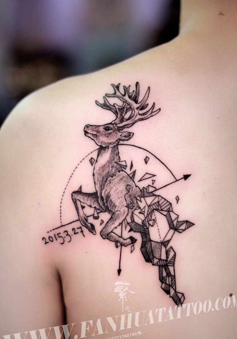当前位置: 首页 >江苏省苏州市纹身店-苏州繁花艺术刺青纹身图案>鹿纹身图片_成品手稿背部肩部传统国画动物满背纹身图案