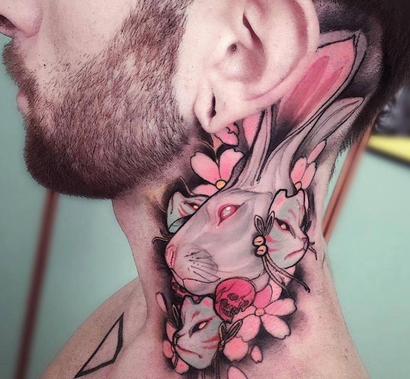猫 女郎 狐狸 兔子面具水冰月…纹身图片_手稿手臂手部动物纹身图案