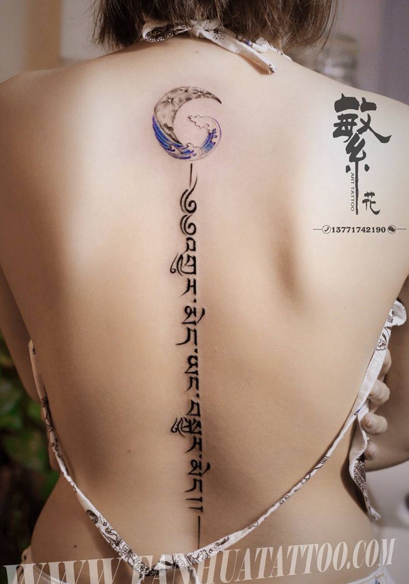 当前位置: 首页 >江苏省苏州市纹身店-苏州繁花艺术刺青纹身图案>脊柱梵文纹身图片_成品背部欧美字符动物纹身图案