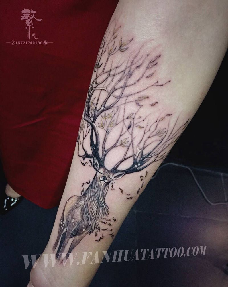 当前位置: 首页 >江苏省苏州市纹身店-苏州繁花艺术刺青纹身图案>麋鹿纹身图片_成品手稿手臂欧美清新动物原创纹身图案
