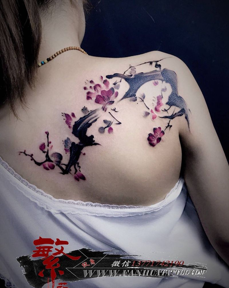 中国风梅花纹身图片_成品手稿背部传统植物原创纹身图案