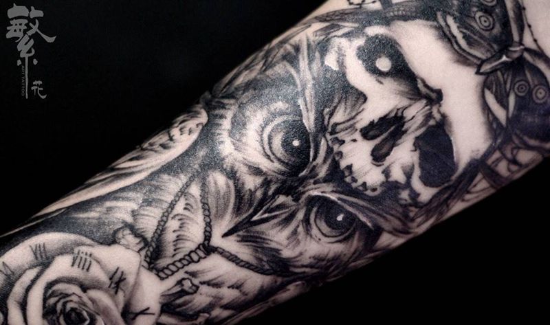 当前位置: 首页 >江苏省苏州市纹身店-苏州繁花艺术刺青纹身图案>猫头鹰纹身图片_成品手稿手部手臂欧美写实动物原创图腾纹身图案