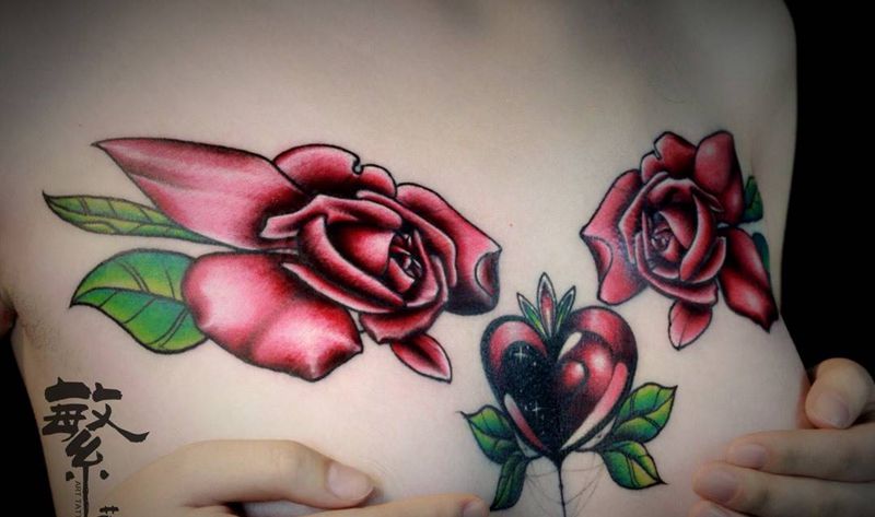 • 女性大花胸纹身_43张霸气漂亮的女性大花胸纹身图案作品