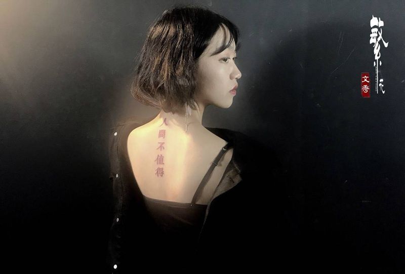 人间不值得纹身图片_成品手稿背部清新字符原创纹身图案