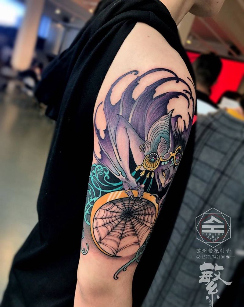 当前位置: 首页 >江苏省苏州市纹身店-苏州繁花艺术刺青纹身图案>获奖作品《蝙蝠盘丝》纹身图片_成品手稿手臂欧美动物原创纹身图案