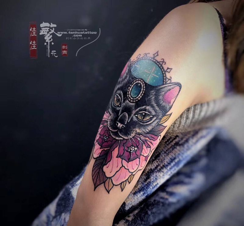 喵遮盖纹身图片_成品手稿手臂欧美写实动物原创遮盖旧遮盖纹身图案