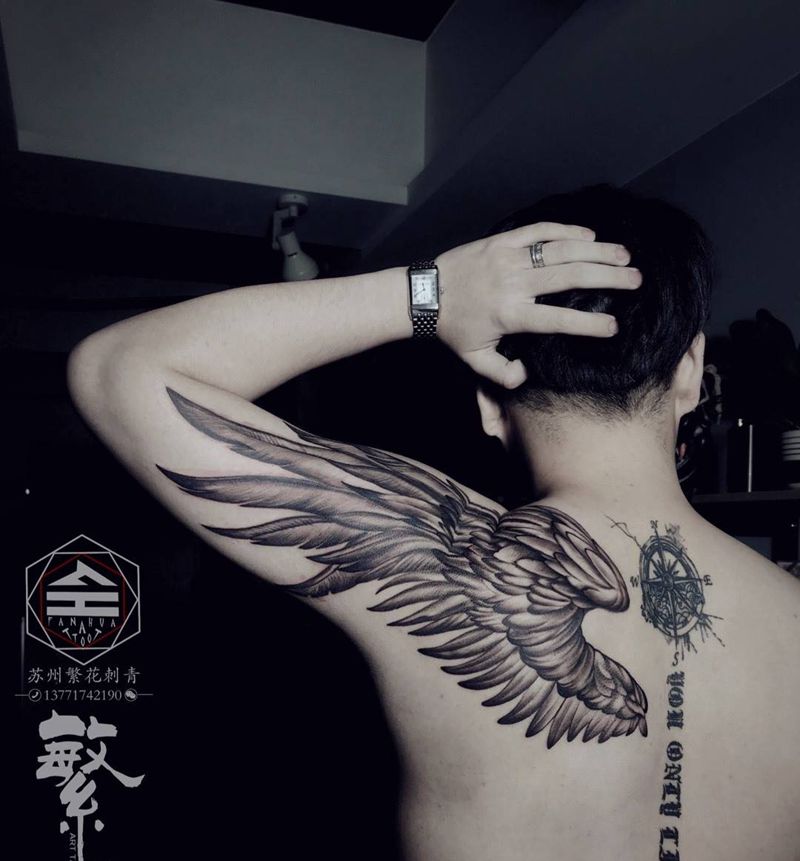 当前位置: 首页 >江苏省苏州市纹身店-苏州繁花艺术刺青纹身图案>天使的翅膀纹身图片_成品手稿手臂肩部传统写实动物原创翅膀纹身图案
