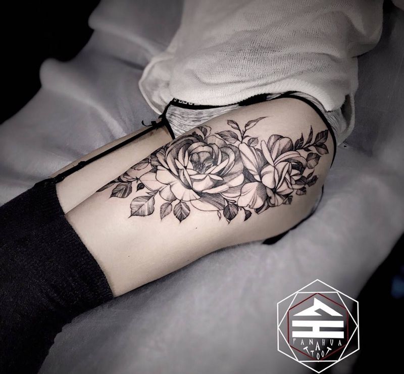 当前位置: 首页 >江苏省苏州市纹身店-苏州繁花艺术刺青纹身图案>复古玫瑰纹身图片_成品手稿腿部欧美清新写实原创植物玫瑰纹身图案
