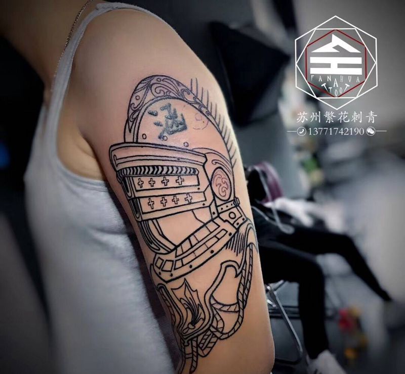 当前位置: 首页 >江苏省苏州市纹身店-苏州繁花艺术刺青纹身图案>蒙面武士遮盖纹身图片_成品手稿手臂欧美写实原创人物纹身图案