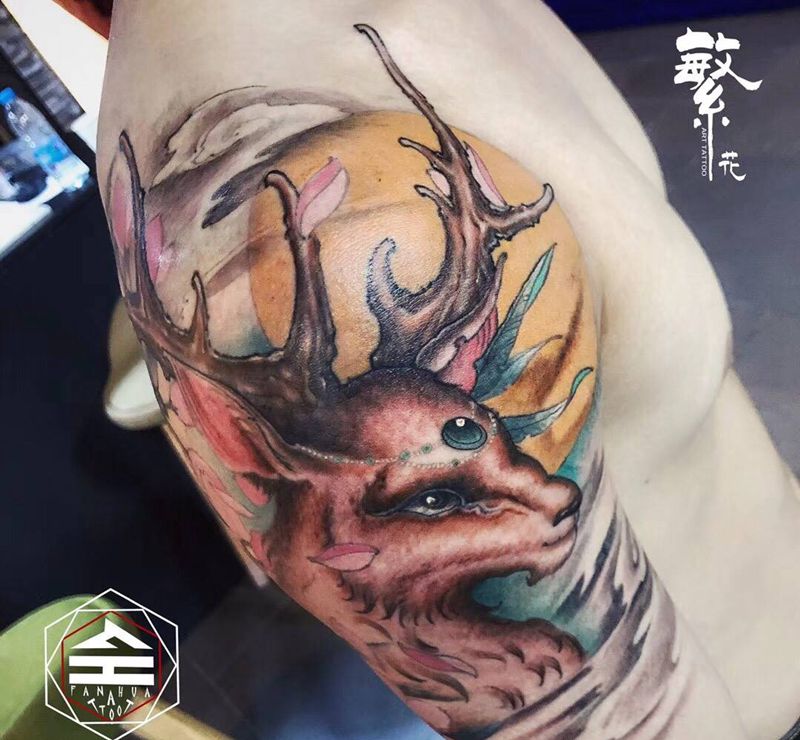 当前位置: 首页 >江苏省苏州市纹身店-苏州繁花艺术刺青纹身图案>玄鹿纹身图片_手臂新传统大臂花臂纹身图案