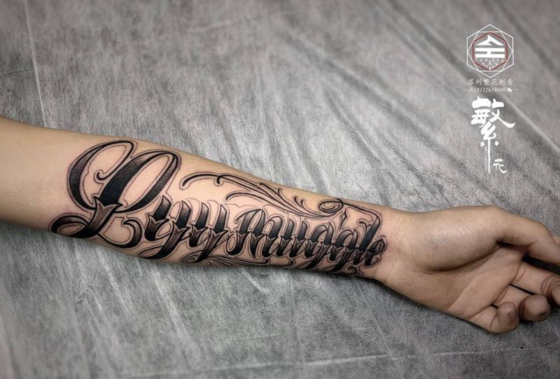 花体字纹身图片_手臂花体字纹身图案