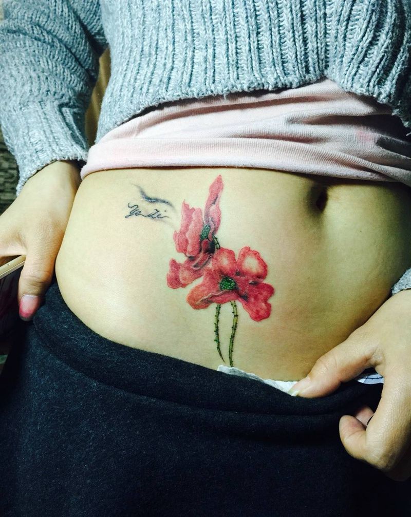 • 时尚性感的腹部莲花纹身图案