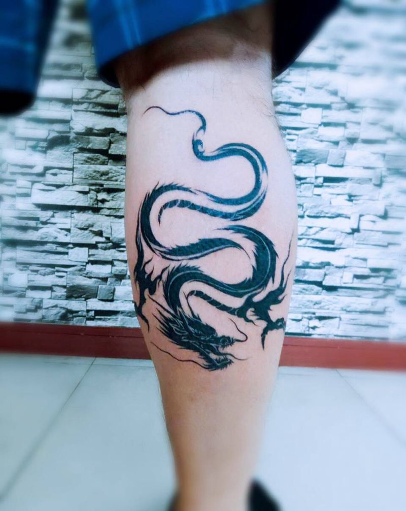 • T网红王老大花腿龙纹身图片_腿部新传统纹身图案