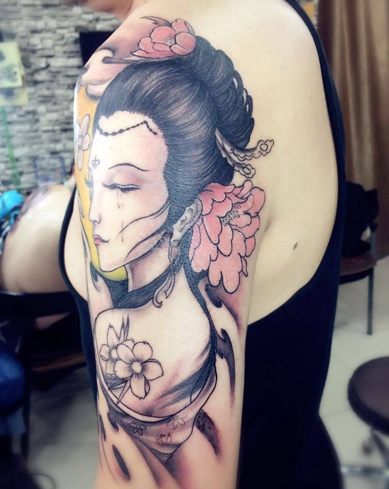 艺妓纹身图片_成品手臂背部腿部传统肖像人物纹身图案