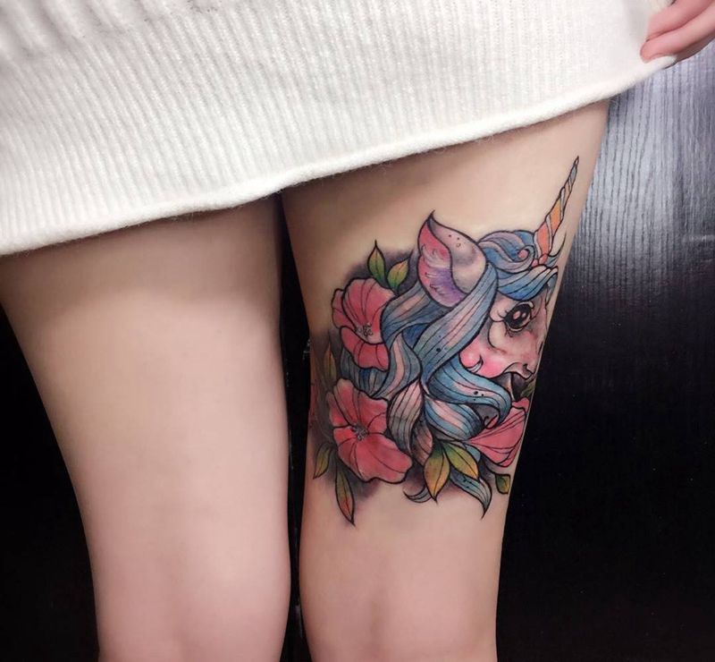 • T网红王老大花腿龙纹身图片_腿部新传统纹身图案
