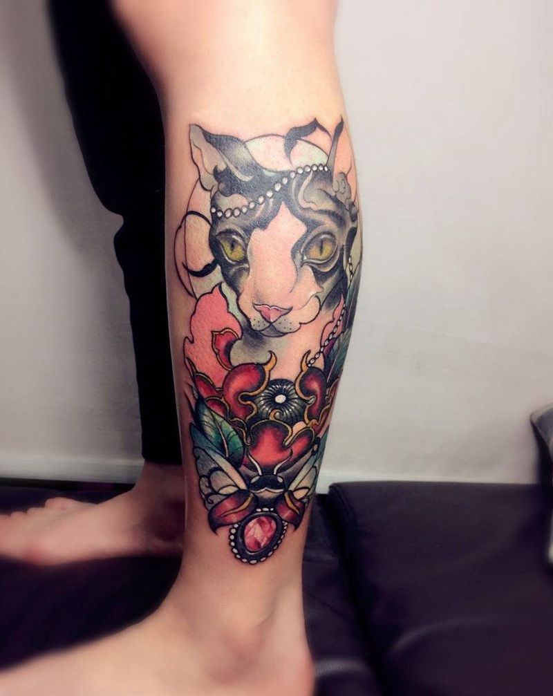 • T网红王老大花腿龙纹身图片_腿部新传统纹身图案