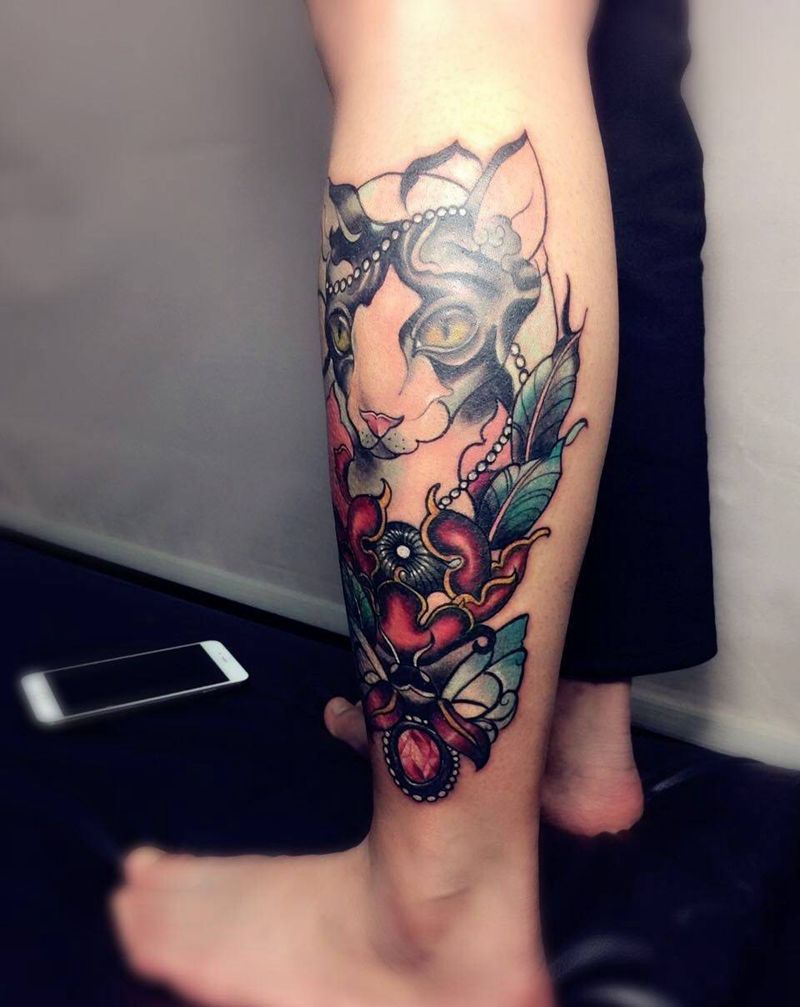 • T网红王老大花腿龙纹身图片_腿部新传统纹身图案