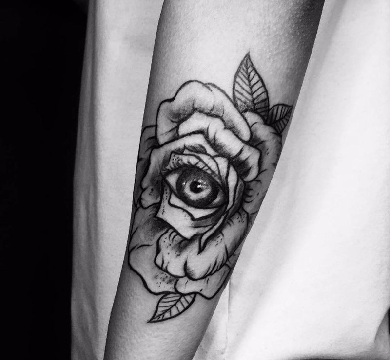 • 手背潮流时尚的玫瑰花眼睛纹身图案