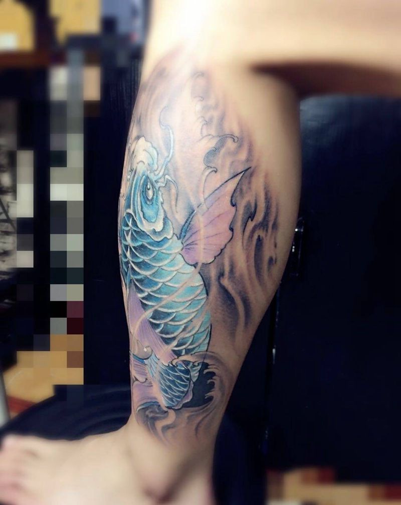 鲤鱼纹身图片_成品腿部肩部背部手臂传统清新动物纹身图案