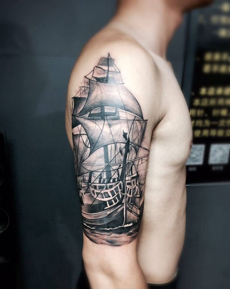 当前位置: 首页 >江苏省苏州市纹身店-苏州夜行堂纹身馆纹身图案>扬帆起航纹身图片_成品手臂欧美写实帆船纹身图案