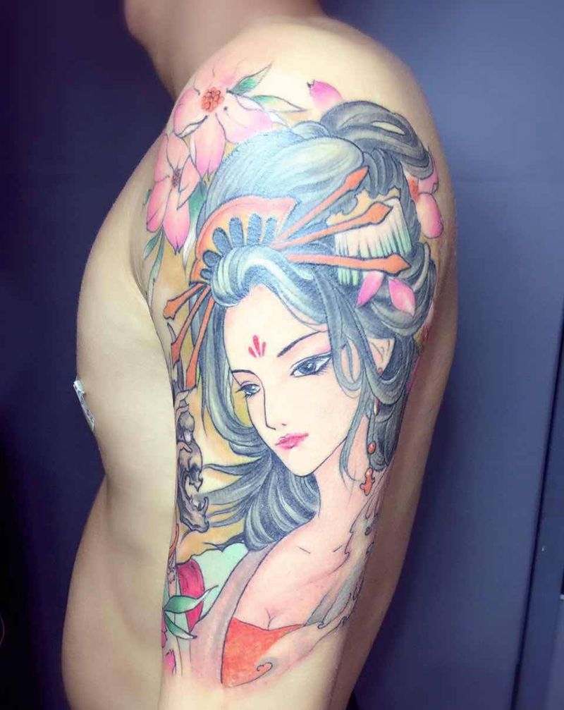 当前位置: 首页 >江苏省苏州市纹身店-苏州夜行堂纹身馆纹身图案>仕女纹身图片_成品肩部手臂腿部背部传统肖像人物鬼神纹身图案