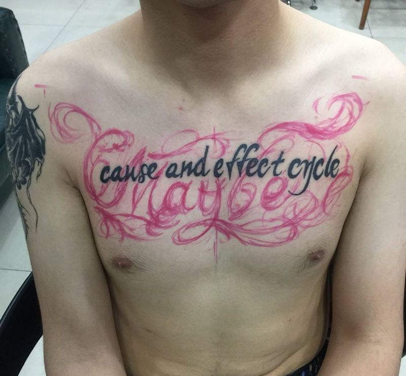 添加设计(奇卡诺字体)纹身图片_成品原创胸部肩部背部欧美清新字符图腾手臂纹身图案