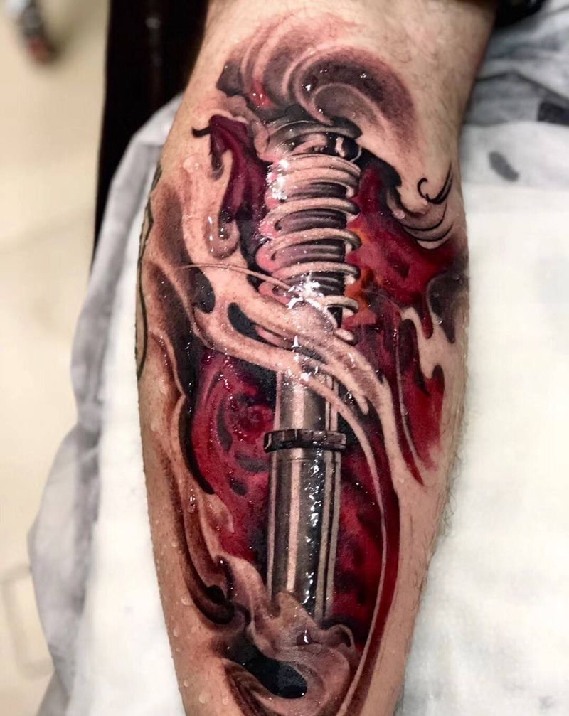 当前位置: 首页 >江苏省苏州市纹身店-苏州夜行堂纹身馆纹身图案>机械纹身图片_成品腿部欧美静物纹身图案