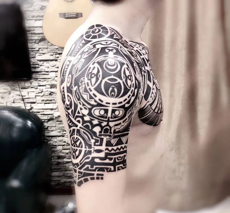 玛雅图腾纹身图片_成品手臂胸部欧美传统图腾纹身图案