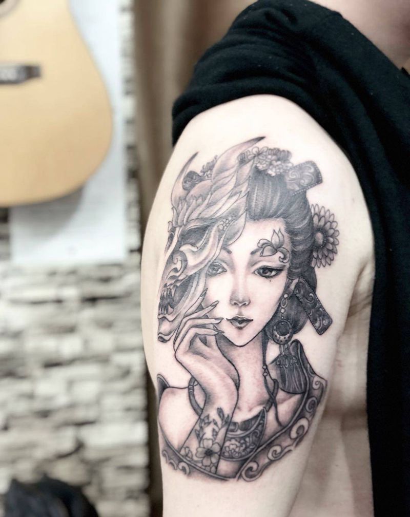 艺妓纹身图片_成品背部手臂腿部肖像人物鬼神纹身图案