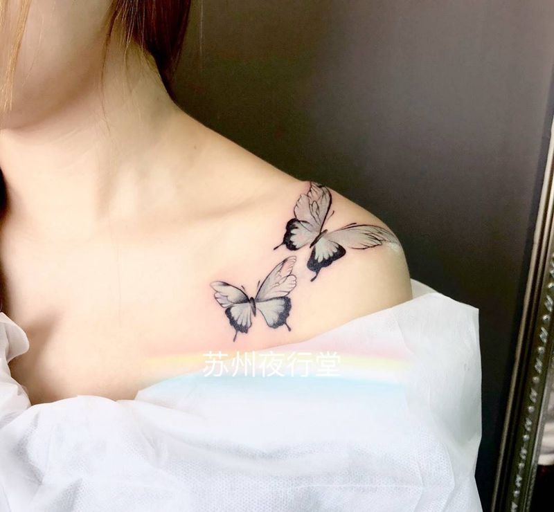 蝴蝶遮盖疤痕纹身图片_成品胸部肩部背部手部脚部清新动物原创手臂纹身图案