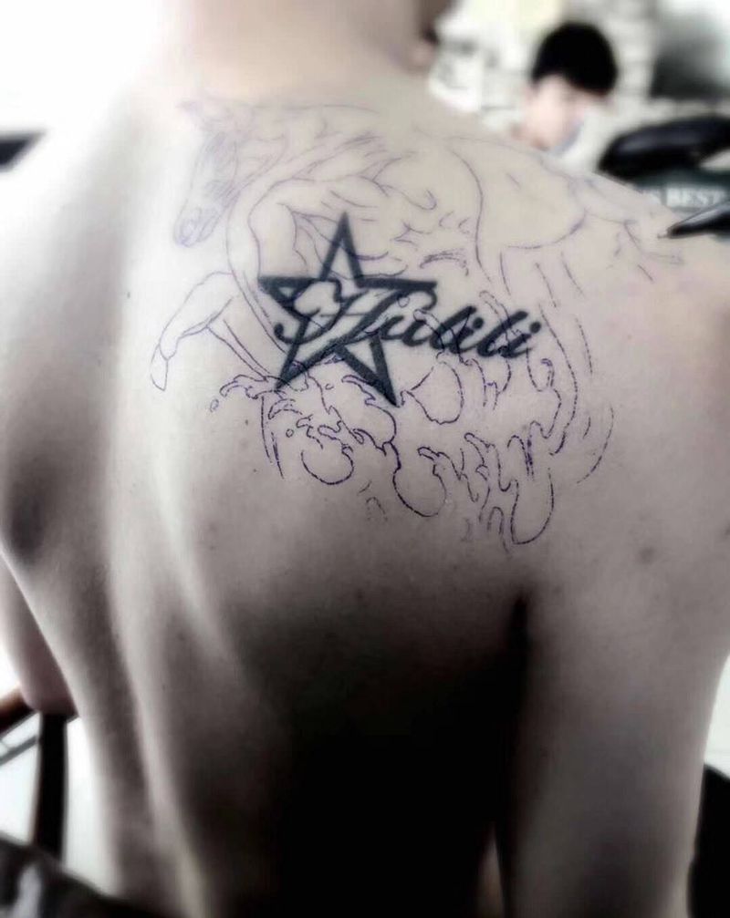 • 纹身吧推荐的披肩图腾半胛纹身图案作品展示