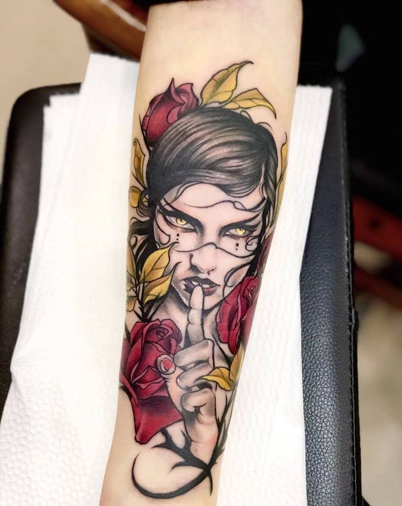当前位置: 首页 >江苏省苏州市纹身店-苏州夜行堂纹身馆纹身图案>玫瑰女人纹身图片_成品背部手臂腿部欧美肖像人物植物肩部纹身图案