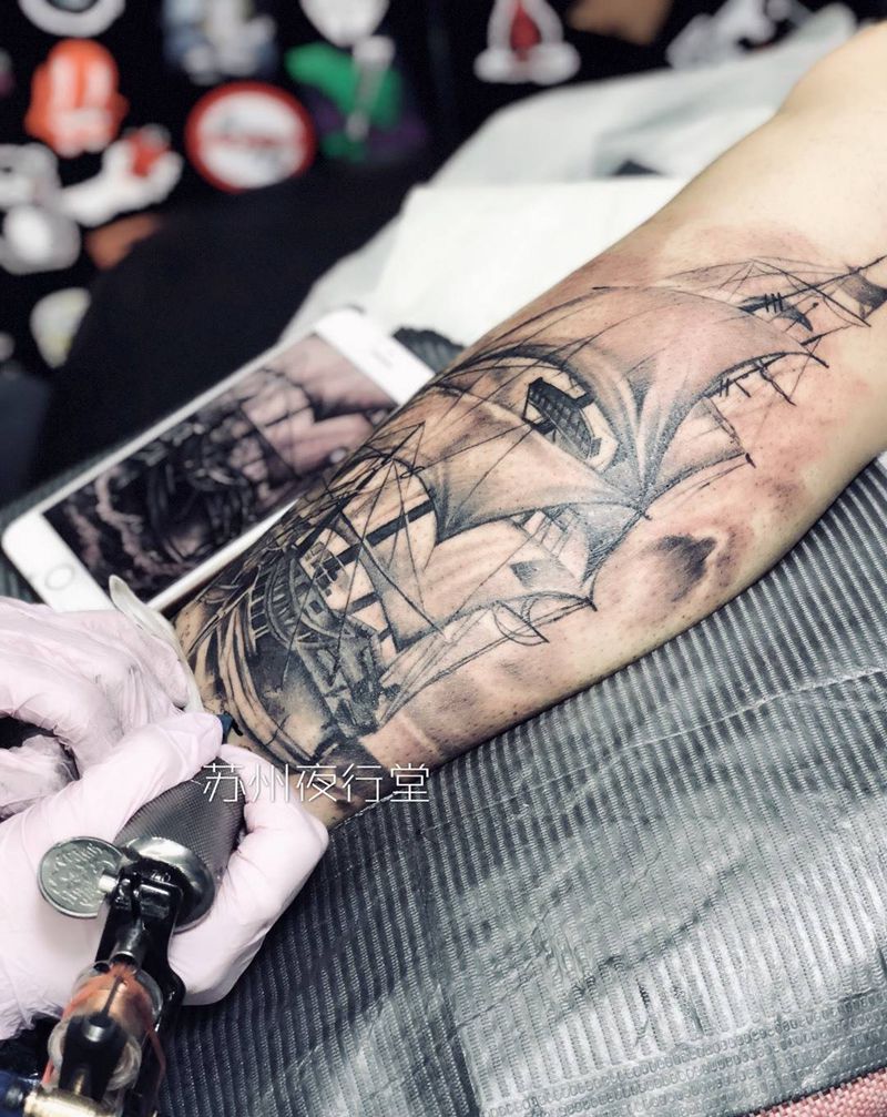 当前位置: 首页 >江苏省苏州市纹身店-苏州夜行堂纹身馆纹身图案>船纹身图片_成品腿部欧美写实几何帆船纹身图案