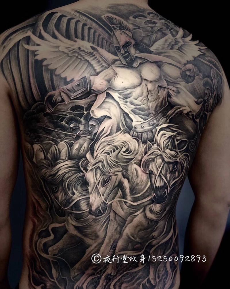 斯巴达纹身图片_背部欧美写实满背纹身图案