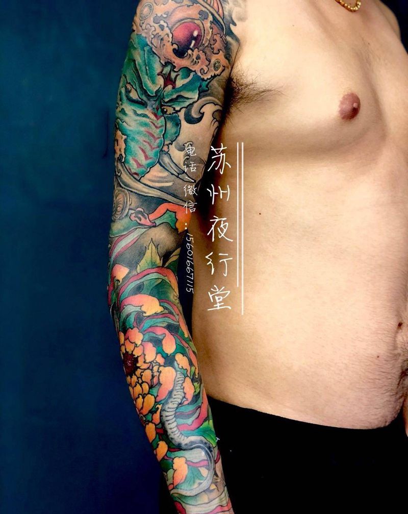 当前位置: 首页 >江苏省苏州市纹身店-苏州夜行堂纹身馆纹身图案>象神系列花臂纹身图片_成品手臂腿部传统动物植物花臂鬼神纹身图案