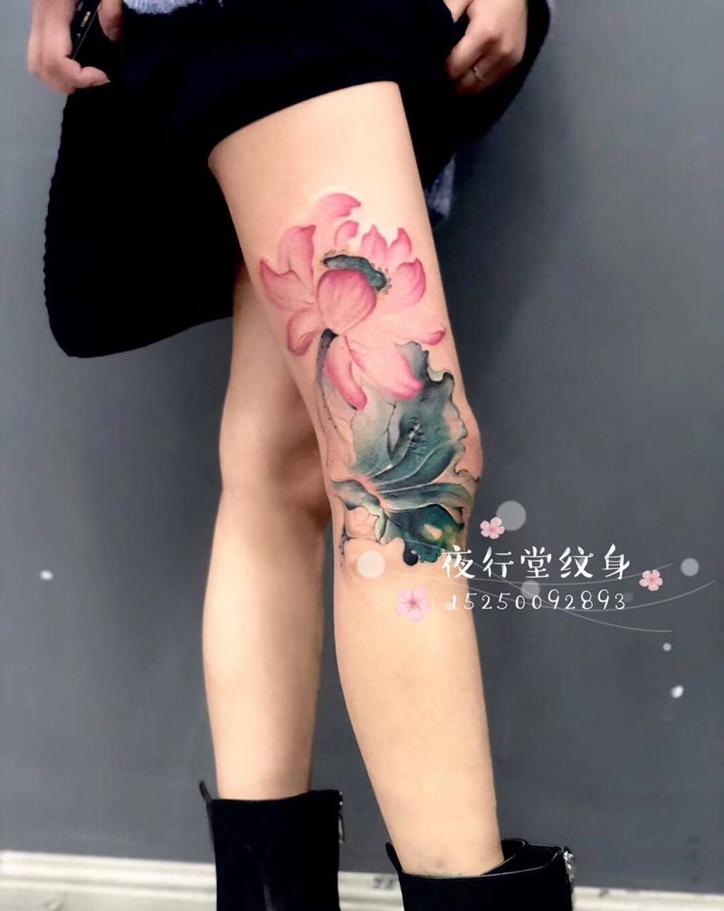 当前位置: 首页 >江苏省苏州市纹身店-苏州夜行堂纹身馆纹身图案>莲花纹身图片_腿部新传统水彩纹身图案