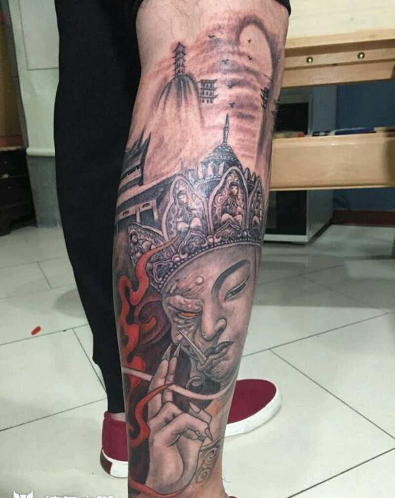 • T网红王老大花腿龙纹身图片_腿部新传统纹身图案