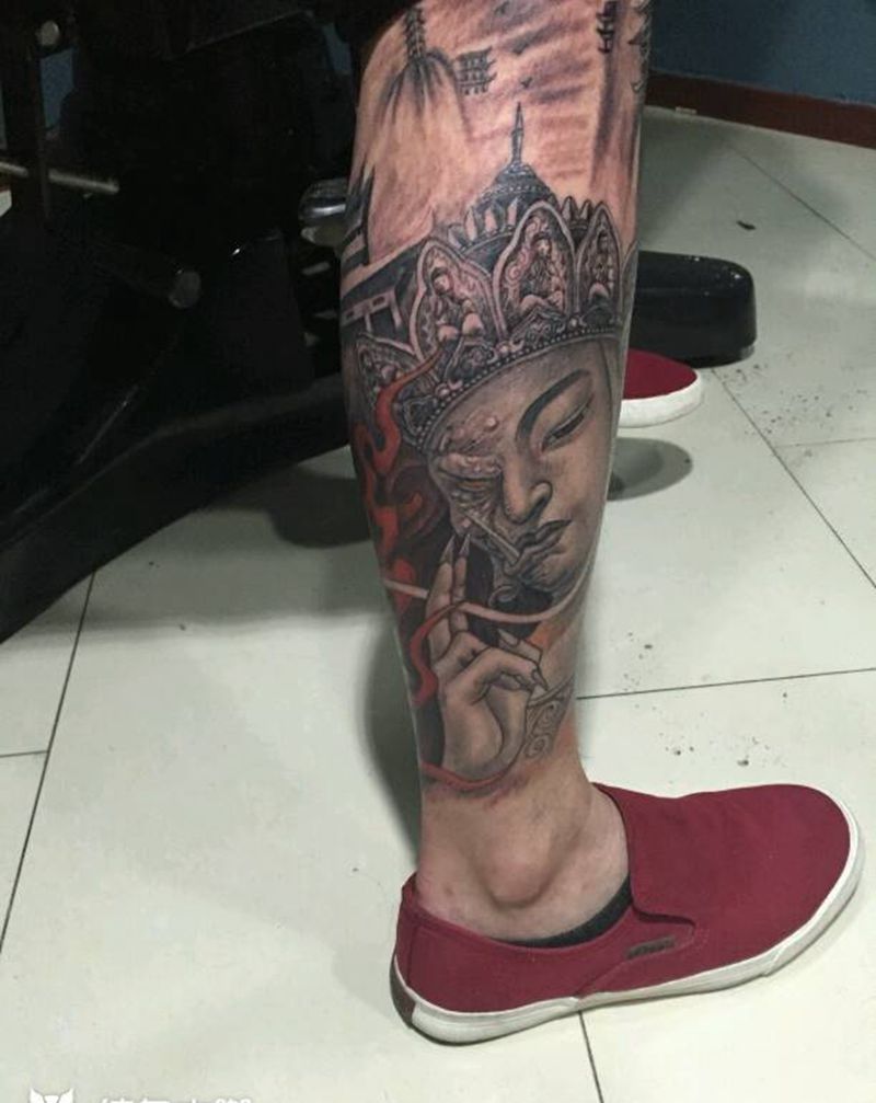 • T网红王老大花腿龙纹身图片_腿部新传统纹身图案