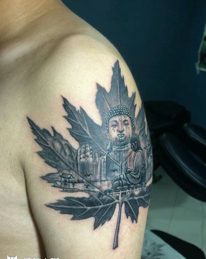 遮盖~一花一世界,一叶一如来纹身图片_手臂传统人物原创纹身图案