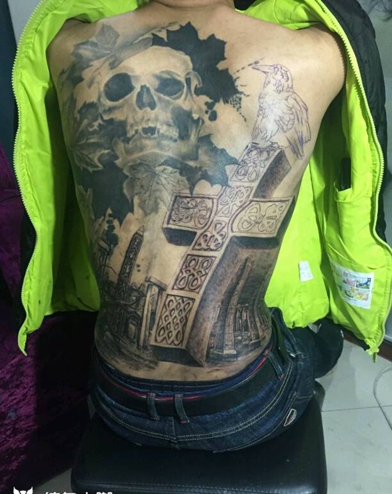 • 纹身吧推荐的披肩图腾半胛纹身图案作品展示