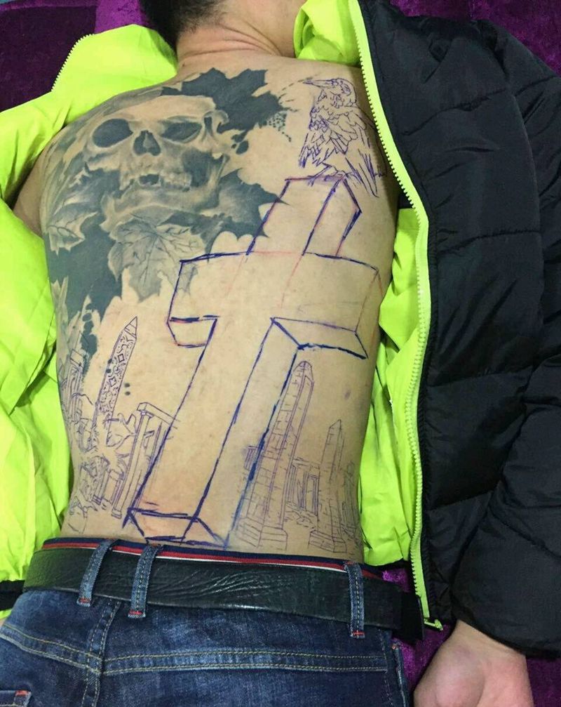 • 纹身吧推荐的披肩图腾半胛纹身图案作品展示