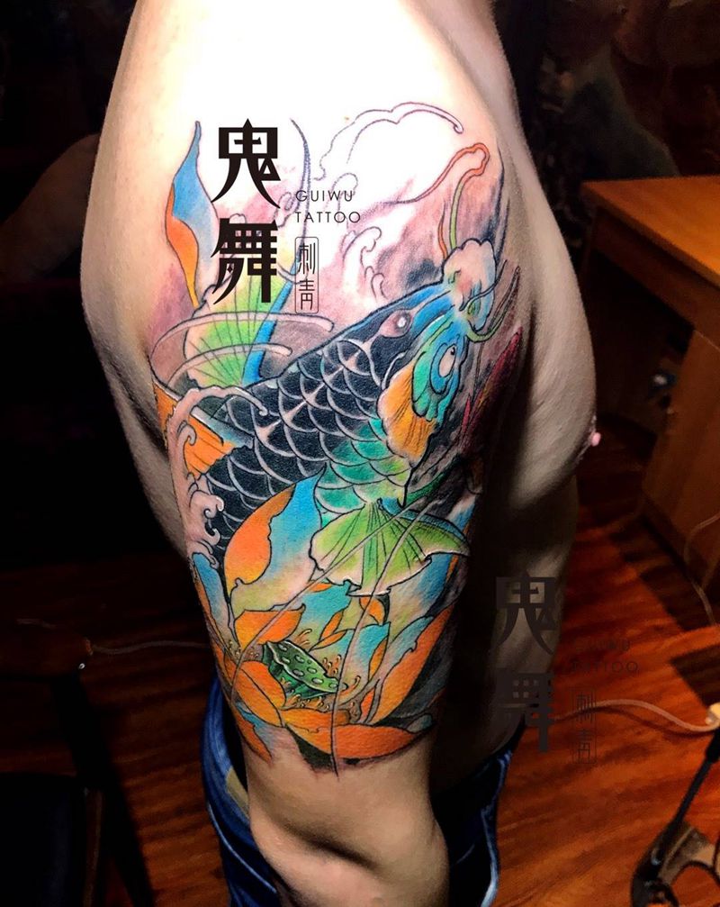 当前位置: 首页 >江苏省苏州市纹身店-鬼舞刺青.旗舰店纹身图案>彩色锦鱼纹身图片
