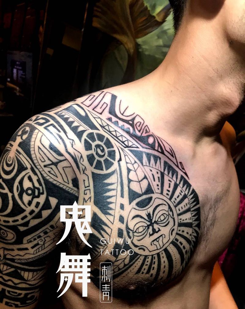 • 纹身吧推荐的披肩图腾半胛纹身图案作品展示