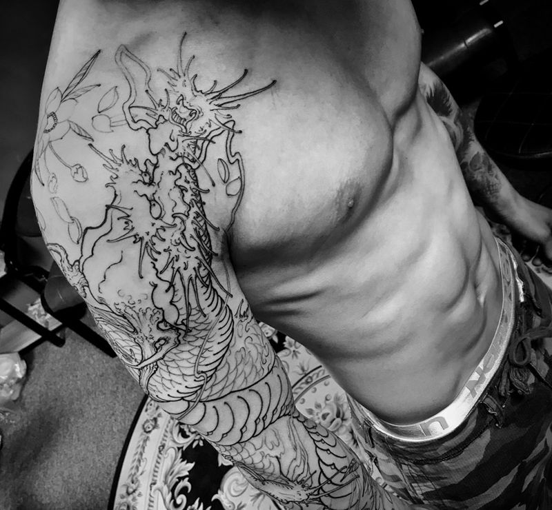当前位置: 首页 >江苏省苏州市纹身店-谛酉刺青纹身图案>龙纹身图片_成品手臂国画动物原创纹身图案