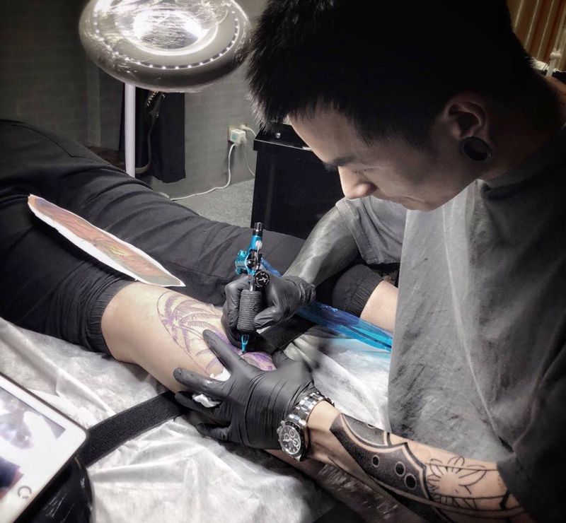 • T网红王老大花腿龙纹身图片_腿部新传统纹身图案